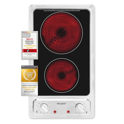 Exquisit® Placa Vitrocerámica Encastrable 2 Zonas, 3000W, Marco de Acero Inoxidable, 9 Niveles de Potencia, Control con