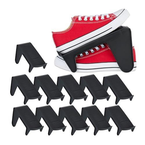 Relaxdays Organizadores Zapatos, Set de 12 Apiladores de Calzado, hasta Talla 39, Antideslizantes, Plástico, Negro