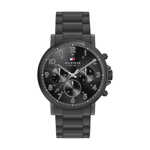 Tommy Hilfiger Reloj Analógico de Cuarzo Multifunción para Hombre con Correa de Acero Inoxidable Negra - 1710383